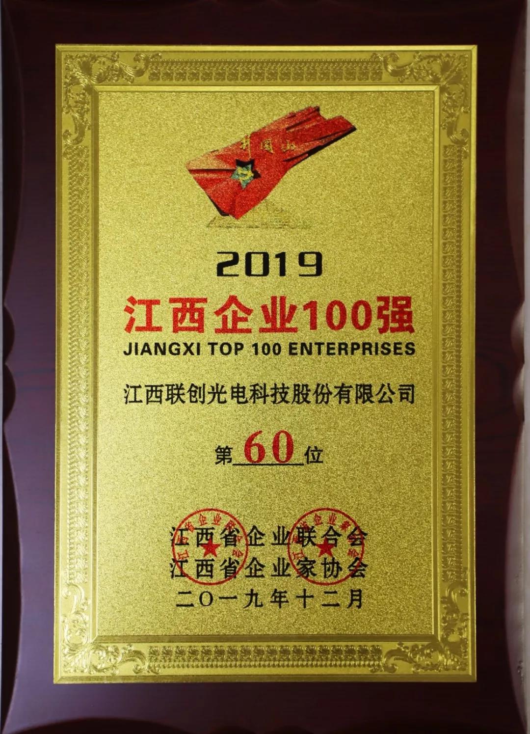 聯(lián)創(chuàng)光電入選2019江西企業(yè)100強(qiáng)榜單